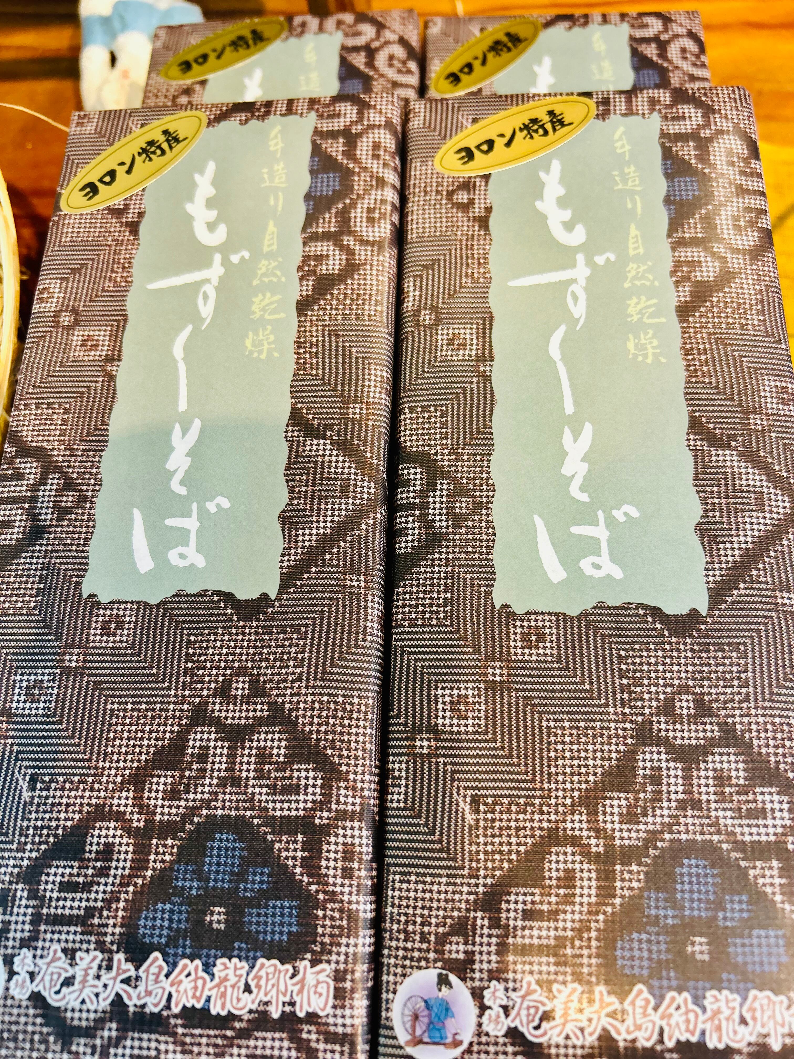 もずくそば 3束 箱入り(大島紬柄包装)